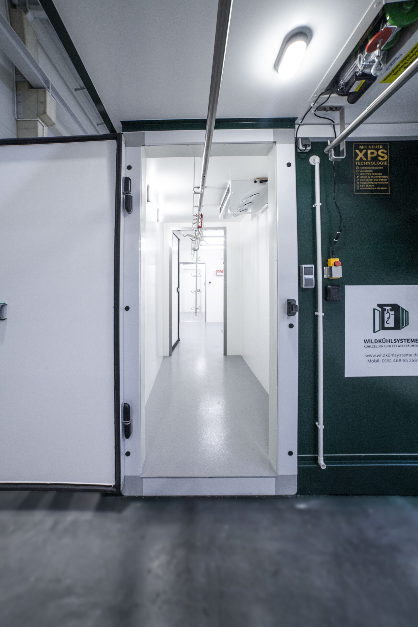 Der Aufnahmebereich ist als Kühlraum ausgeführt und dient der hygienischen Annahme und Zwischenlagerung des Wildes.