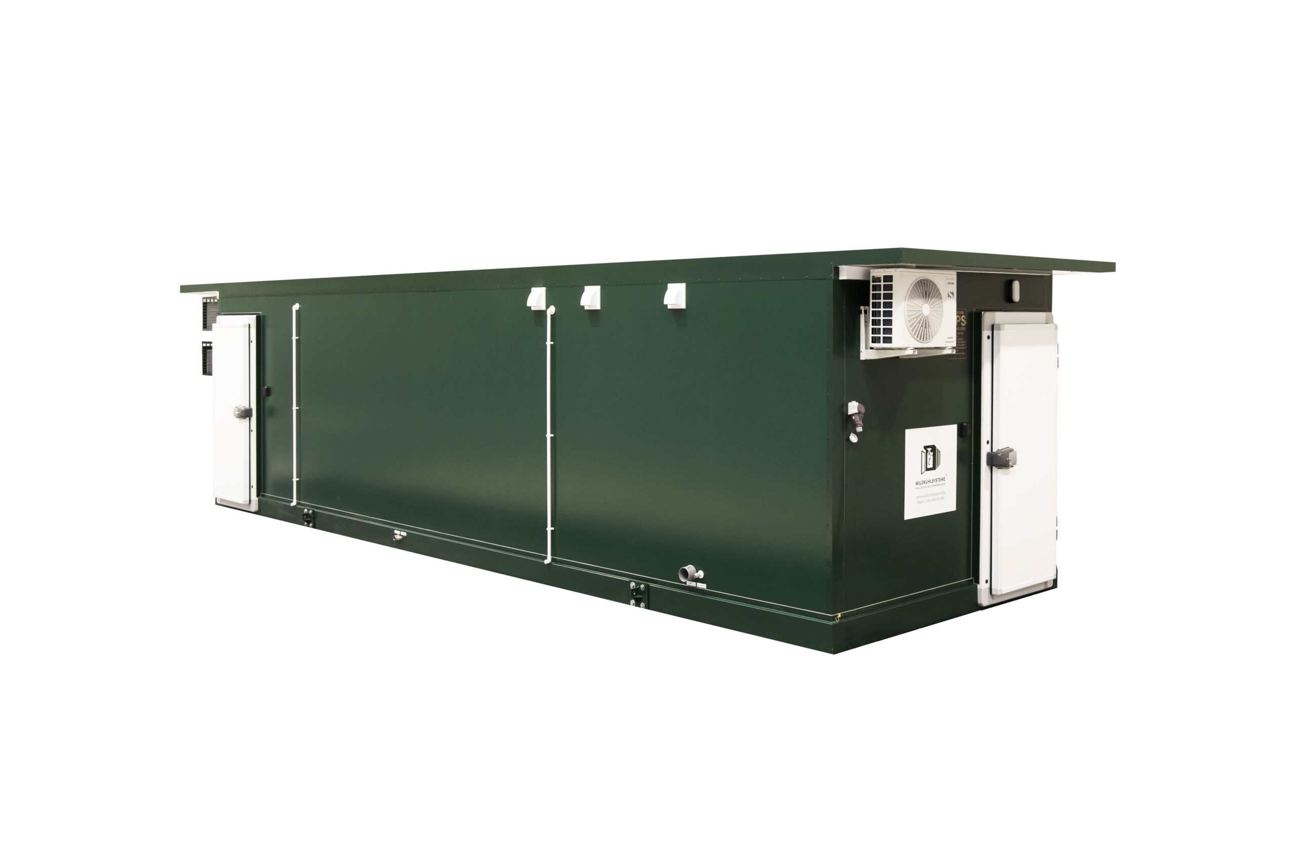 Der 10 × 3 Meter große Verarbeitungscontainer verfügt zudem über einen integrierten Personalbereich mit separatem Zugang.